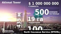 В Грозном полным ходом идет строительство 435-метровой башни «Ахмат» (первоначально предполагалось, что она будет 400 метров в высоту), названной так в честь отца Рамзана Кадырова. В башне будет 80 этажей, около ста квартир класса люкс, отель на 500 номеров, офисы, рестораны с панорамными видами на город, музей в честь Ахмата-Хаджи Кадырова. По всей вероятности, небоскреб станет новой архитектурной достопримечательностью Грозного, выполненным в форме традиционной средневековой чеченской боевой башни. Поражают помпезность и высота сооружения, учитывая, что строится оно в зоне постоянной высокой сейсмичности.